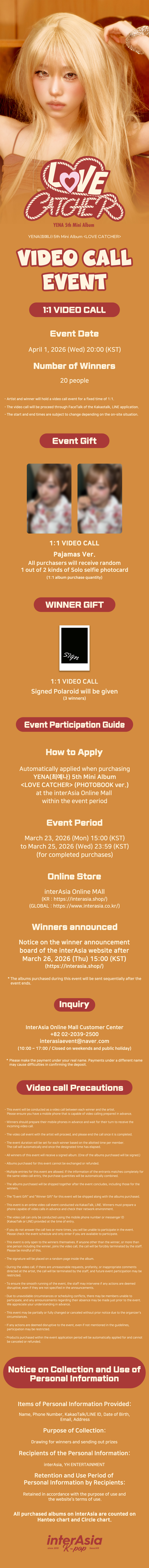 [4/1 1:1 VIDEO CALL EVENT] YENA - 5TH MINI ALBUM [LOVE CATCHER] (PHOTOBOOK ver.)