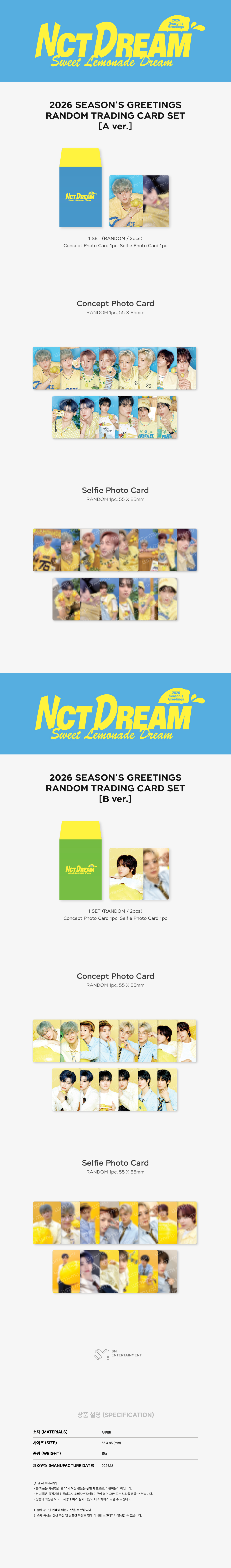 Out of stock Quick view NCT DREAM - 2026 SM ARTIST SEASON’S GREETINGS OFFICIAL MD : RANDOM TRADING CARD SET (A ver.) NCT DREAM MSRP: Now: $6.25 Was: