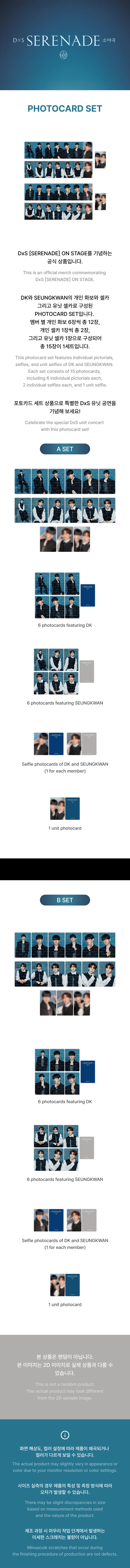 Add to Cart Quick view SEVENTEEN - DxS [SERENADE] ON STAGE MD : Photocard Set (B SET) SEVENTEEN MSRP: Now: $15.63 Was: