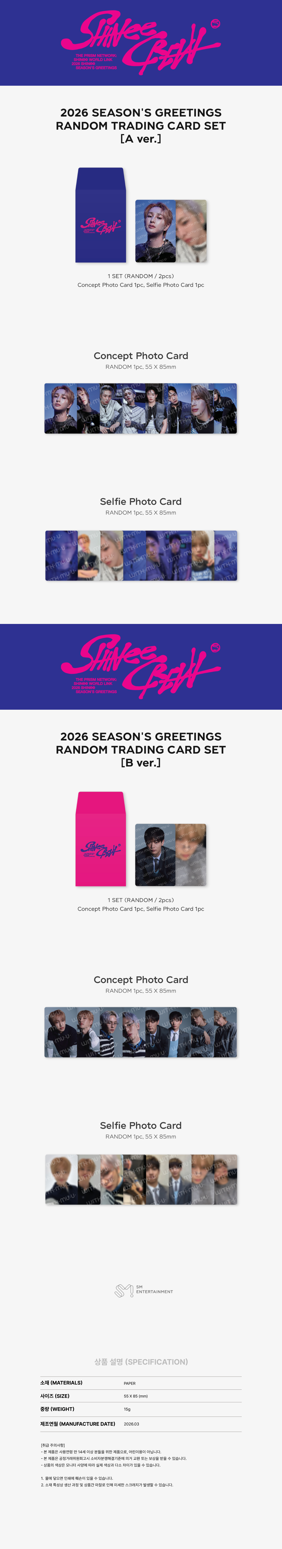 SHINee - 2026 SM ARTIST SEASON’S GREETINGS OFFICIAL MD : RANDOM TRADING CARD (B ver.)